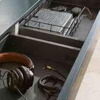 Kaffeebar sowie Teebar und weitere Elektrogeräte finden im Jalousienschrank Platz und können bei Bedarf herausgefahren werden und sind von allen Seiten bedienbar