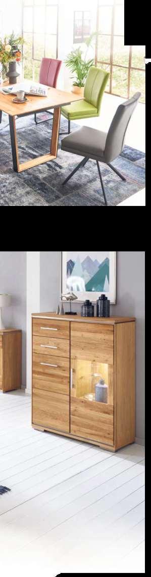 Ambiente Liebe zum Detail Beste Materialien kunstvoll verarbeitet. Stuhl, Bezug Stoff BiColor, Gestell Eiche rustico hell geölt, ca 55x85x61 cm In Stoff je ab 439,L eferung & Mon age GRATIS Esstisch, Eiche rustico hell geölt, ca 190x100x75 cm 1089,L eferung & Mon age GRATIS Solitärbank, Bezug Stoff BiColor, Gestell Eiche rustico hell geölt, ca 200x85x71 cm In Stoff ab 1371,L eferung & Mon age GRATIS 2x Wandboard, Lack schiefergrau matt, B/H/T ca 120x2,6x20 cm, inkl LED Beleuchtung Ohne Deko 354,Stuhl, Bezug Leder oliv, Gestell Metall anthrazit matt, B/H/T ca 53x90x62 cm, Sitzhöhe ca 50 cm In Leder je ab 599,L eferung & Montage GRATIS Drehfunktion 58,4 Termin auf Klick Zeit für Beratung& Planung Jetzt online buchen! BeratungsTermin hier klicken EP 43 22 KW43 07