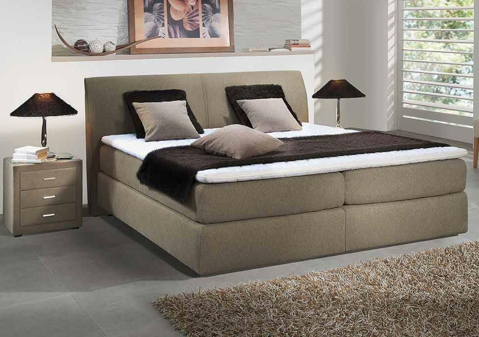 BOXSPRINGBETT DIAMANT, Obermatratze: 5-Zonen Tonnentaschenfederkern H2 mit optimaler Körperanpassung und Punktelastizität. Unterbau: 5-Gang Bonnell-Matratze, hochwertiger Topper-S mit klimaregulierendem Markenbezug, waschbar bis 60°C. Fuß Kunststoff alufarbig, Liegefläche ca. 160x200 cm, Liegehöhe ca. 55 cm. Bezug: 100% Polyester D78040