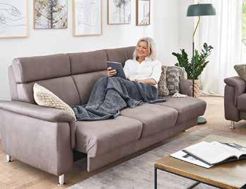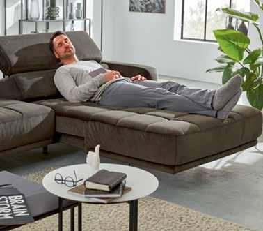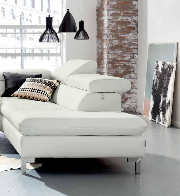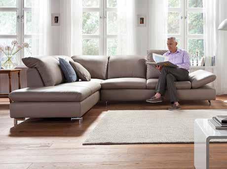 INLUSIVE Große STOFF& LEDERAUSWAHL gegen Mehrpreis 11 Fuß-Varianten Umfangreicher Typenplan 2 Sitzkomfort-Varianten 3 Sitzhöhen: 44, 46 oder 49 cmTOP AUSWAHL: ECKKOMBINATION mit hochwertigem Lederbezug im Farbton Kieselgrau und alufarbigen Metallfüßen, best. aus: Ecksofa mit offenem Abschluss links und 2-Sitzer mit Sitztiefenverstellung rechts. Ohne Kopfteil-, Seitenteilverstellung, Boxspringpolsterung und Kissen 2 SITZHÄRTEN ZUR WAHL: Federkern m. Ergo-Pur-Schaum Boxspring (gegen Mehrpreis) SPEZIELL FÜR IHRE GRÖSSE! ... für Menschen mit hohem Anspruch an Design und Komfort. 3 Sitzhöhen zur Wahl! 44, 46 und 49 cm Erleben Sie Polstermöbel mit dem Extra an Funktionalität und Bezugsstoff-Qualität. Wählen Sie aus vielen aktuellen Farben Ihren Favoriten. SEITENTEILVERSTELLUNG Komfortable Kopfteil verstellung. Gegen Mehrpreis. Inklusive Sitz tiefen verstellung im 2-Sitzer Seitenteile fl exibel verstellbar. Gegen Mehrpreis. INKLUSIVE SITZTIEFENVERSTELLUNG IM 2-SITZER 3699.AB J E 109.INKLUSIVE