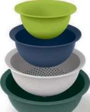 4-TLG SCHÜSSEL/ SIEB-SET, Kunststo versch Farben und Größen ineinanderstapelbar D85119