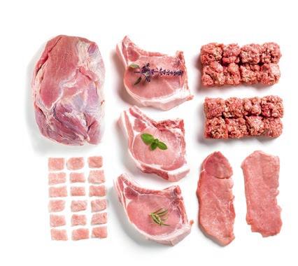 Inhalt: 1 kg Schnitzel, 1 kg Kotelett, 1 kg Braten, 1 kg Geschnetzeltes, 1 kg Hackfleisch.