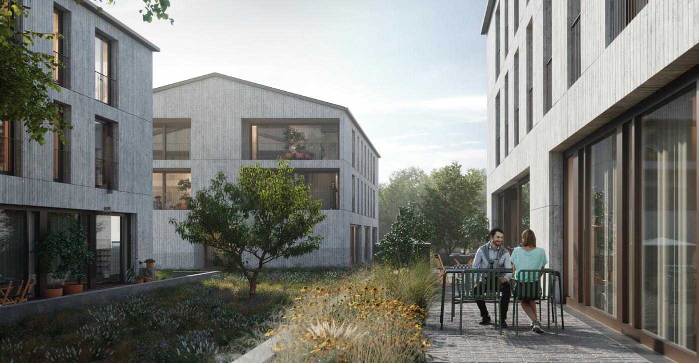 In den vergangenen zweieinhalb Jahren hat sich das Areal grundlegend verändert. Die Bauarbeiten sind weit fortgeschritten, sodass bereits konkrete Termine für den Einzug feststehen. Insgesamt entstehen 60 Mietwohnungen mit ein bis vier Zimmern mit unterschiedlichen Größen und Grundrissen. Die öffentliche Vermarktung der Wohnungen hat bereits begonnen, erste Einheiten – darunter ein Langhaus mit neun 2- bis 4-Zimmer-Wohnungen –sind ab Juni 2026 bezugsbereit. Bis September 2026 sollen sämtliche Wohnungen fertiggestellt sein.