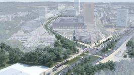 Die begrünte Straßenbahnplattform wird zentral entlang des Konrad-Adenauer-Boulevards angelegt und von einer doppelten Baumreihe gesäumt. Diese Grünfläche wird insgesamt mehr als 400 Bäume umfassen, darunter etwa 50 Bäume, die vorü-