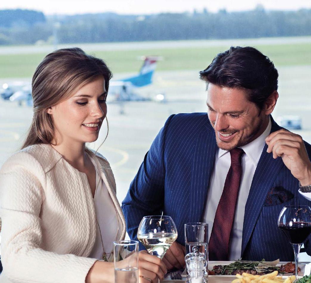 Enjoy the view on the runways in one of the restaurants –Lux airport offers a great variety including a wine bar, the Lux Brewery, Grab&Go, Starbucks, a self-service restaurant and the Oberweis restaurant.