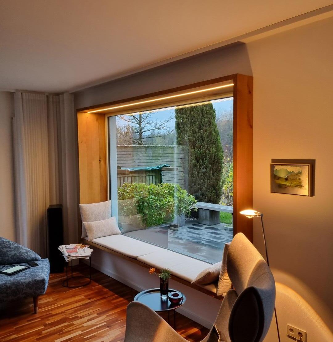 Indirekte Beleuchtung sorgt für eine sanfte Lichtverteilung und minimiert Schatten, so schaffen Sie eine entspannende Umgebung. LED-Streifen hinter Möbeln oder in Nischen eignen sich sehr gut dazu.