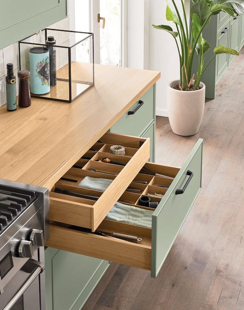 Im Jahr 2025 wird der Mut zu Farben und Materialien großgeschrieben. Küchen in kräftigen Farben wie tiefem Blau, smaragdgrün oder warmen Erdtönen setzen Akzente. Kombiniert werden diese Farben oft mit natürlichen Materialien wie Holz oder Stein, um eine harmonische Balance zu schaffen. Auch der Einsatz von Metallakzenten, wie Kupfer oder Messing, verleiht der Küche einen modernen Touch.