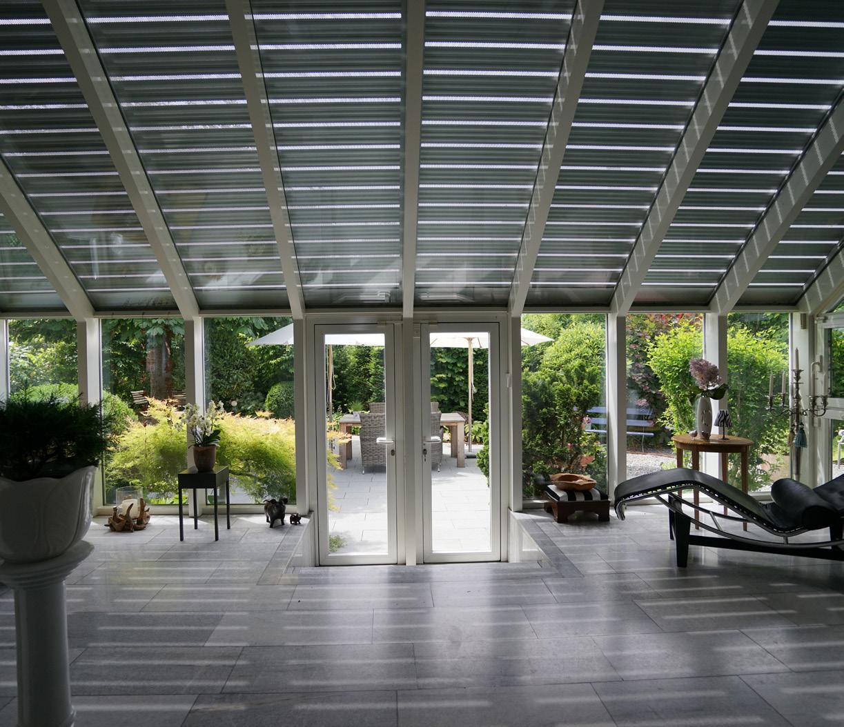 Terrassenüberdachungen erweitern den geschützten Außenbereich und schaffen eine harmonische Verbindung zwischen Innen- und Außenräumen. Diese Konstruktionen bieten nicht nur Schutz vor der direkten Sonneneinstrahlung, sondern auch vor leichtem Regen. Dadurch kann die Terrasse auch bei ungünstigen Wetterbedingungen genutzt werden. Machen Sie ein zweites Wohnzimmer aus ihr für entspannte Stunden im Freien, gesellige Grillabende und Treffen mit der Familie.
