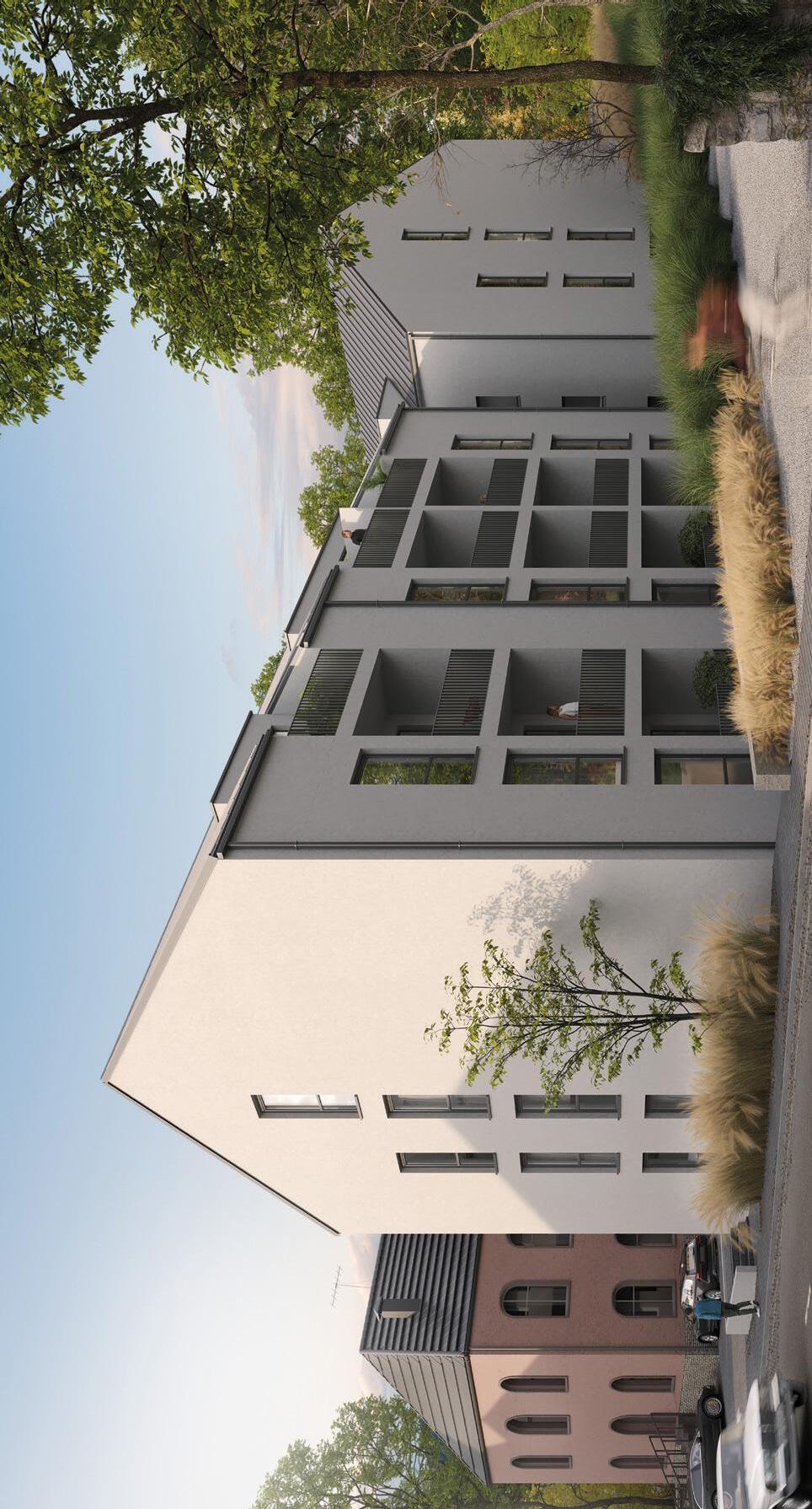 Der neue Gebäudekomplex beinhaltet 17 Wohnungen zwischen 52 und 157 qm sowie eine Gewerbefläche von 307 qm, die flexibel gestaltet und je nach Wunsch auch auf mehrere Einheiten aufgeteilt werden kann. Die Wohneinheiten, bestehend aus bis zu vier Zimmern, Küche, Badezimmer und Abstellraum, verfügen alle über einen Balkon.