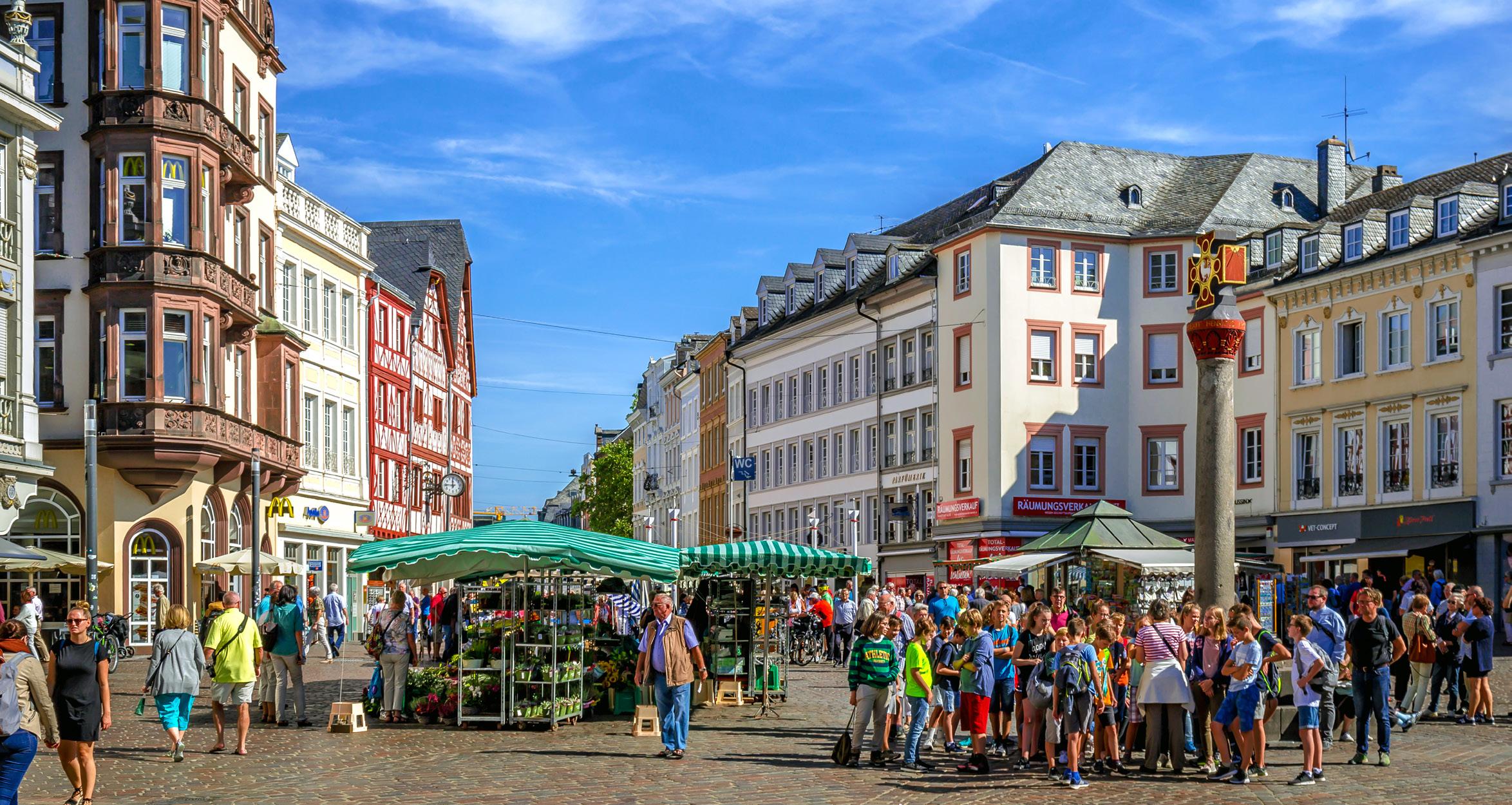 Der Einkauf wird in Trier zum Erlebnis. In historischen Häusern mit Fassaden, die Geschichten erzählen, sind neben den Geschäften, einladende Gastronomiebetriebe beheimatet und freuen sich auf