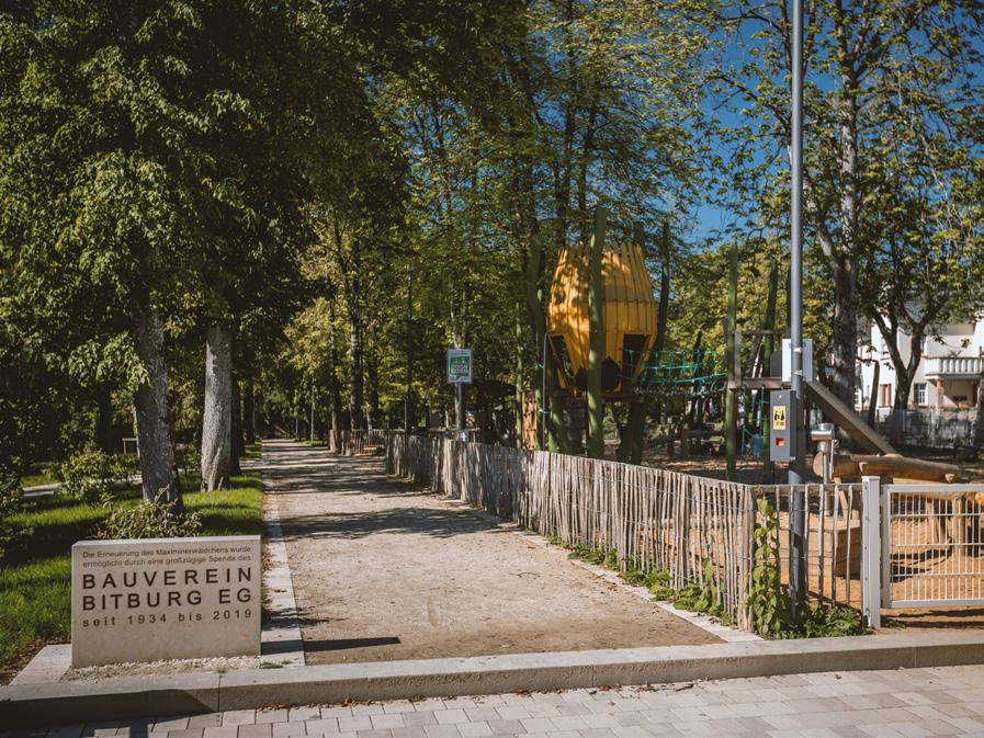 Eine große Dynamik kam in das Projekt, als der Bauverein Bitburg im Rahmen seiner Auflösung beschloss, das bestehende Restvermögen in Höhe von rund 500.000 Euro für den Ausbau des Maximiner Wäldchens zur Verfügung zu stellen. Aufgrund dieser Spende wurde die Neugestaltung der Anlage früher, umfänglicher und in höherer Qualität möglich.