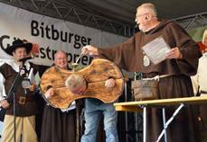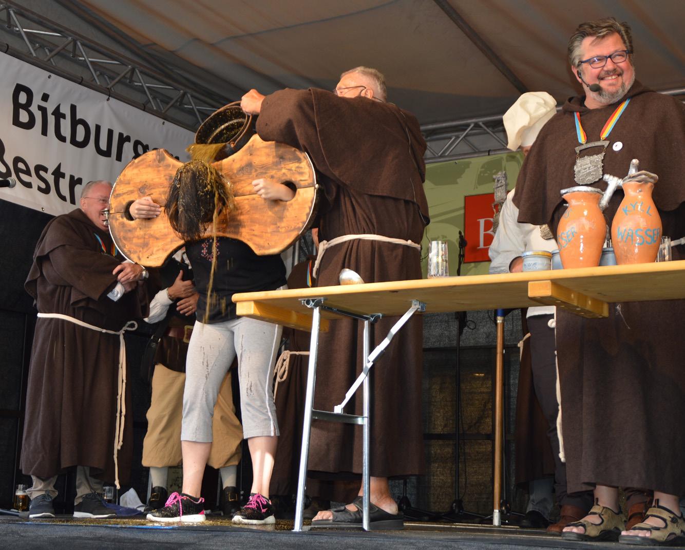 Höhepunkt des Tages wird natürlich die Taufe verdienter Mitbürgerinnen und Mitbürger zu „echt Beberiger Jungen bzw. Mädchen“ sein. Ein Festzug zieht vom Alten Gymnasium zum Gäßestrepperbrunnen auf den Petersplatz. An der Spitze marschieren die Gerolsteiner Stadtsoldaten, dann kommt die Pferdekutsche mit den diesjährigen Täuflingen, gefolgt von echten und „nachgemachten“ Gäßen.