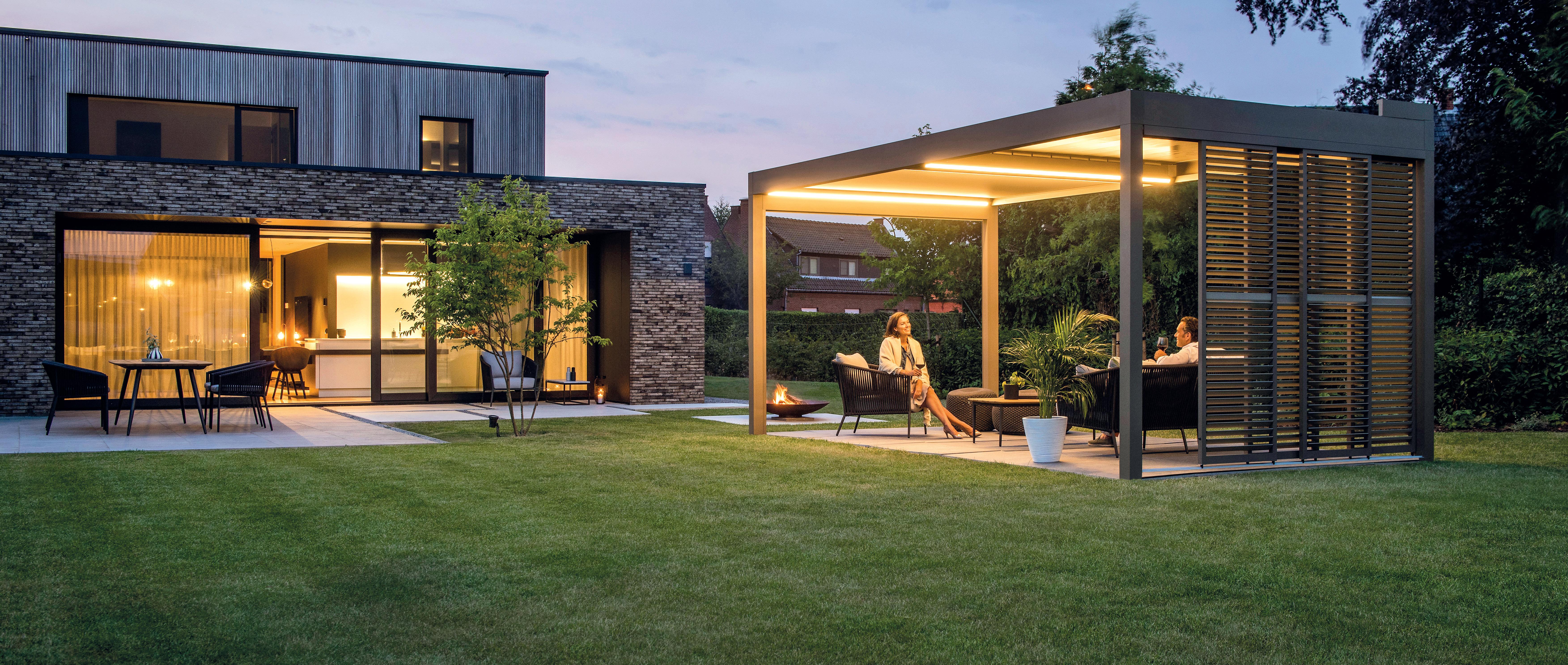 Die Renson Camargue schmückt ein zeitloses und ausgefeiltes Design. Dank des durchdachten Konzepts bietet das Terrassendachsystem Schutz vor Regen und Sonne. Durch die steuerbaren Lamellen lassen sich Lichteinfall und Luftaustausch individuell regeln. Ein direkter Fassadenanschluss ist ebenso möglich wie eine freie Aufstellung im Garten.