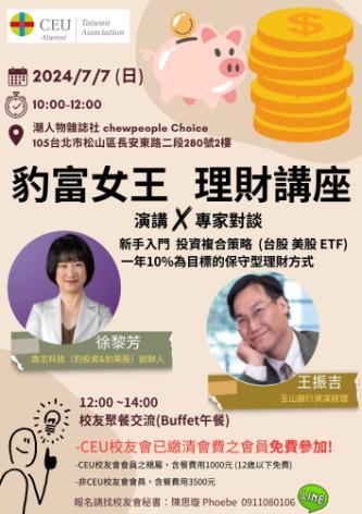 CEU 校友會 7/7(日)豹富女王理財講座順利圓滿結束