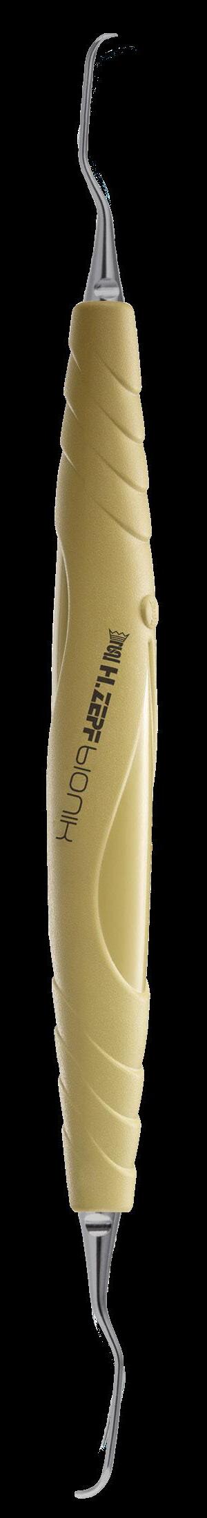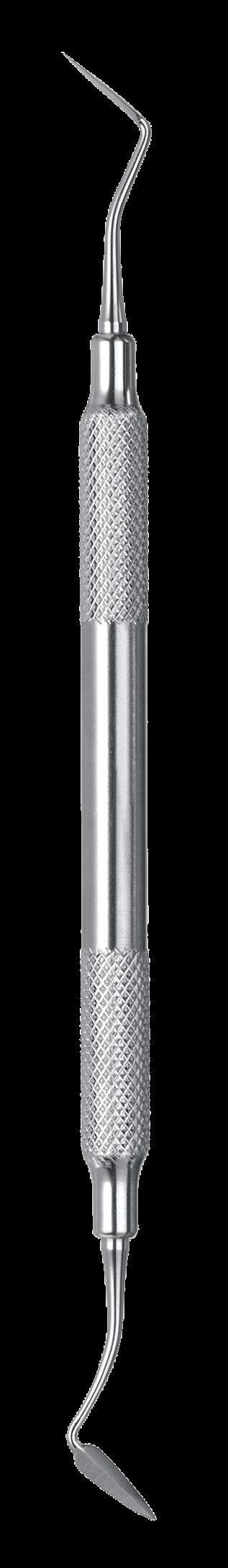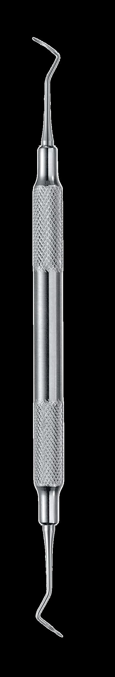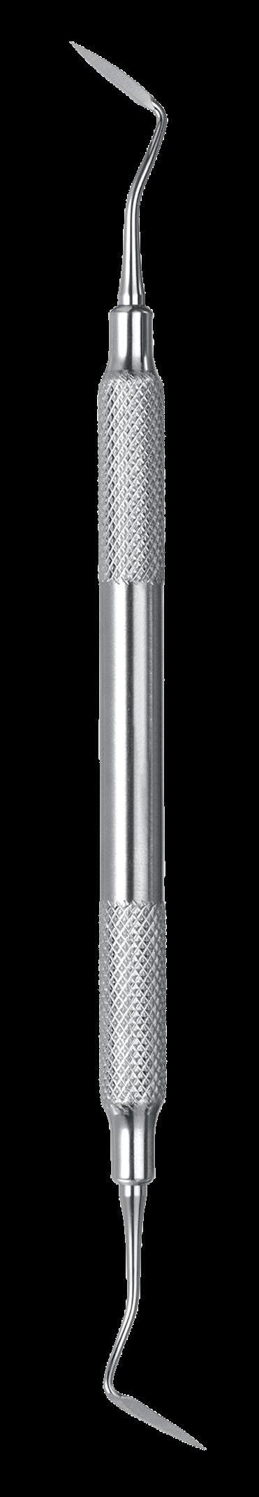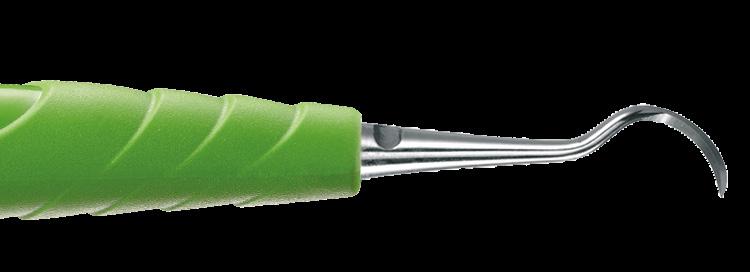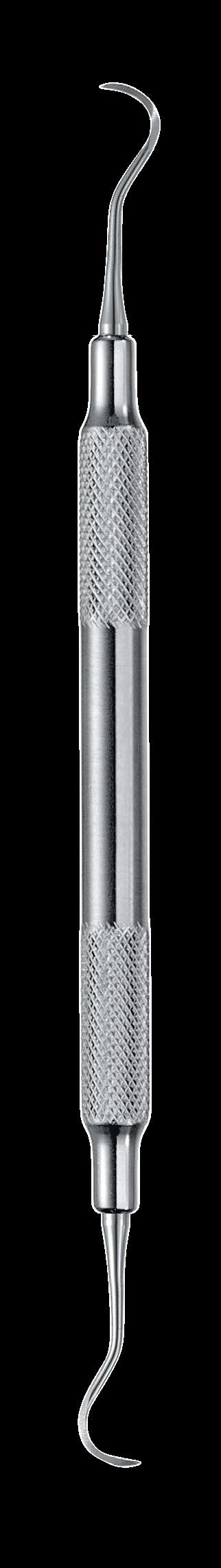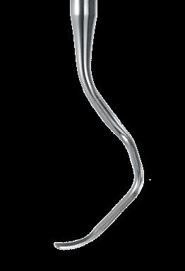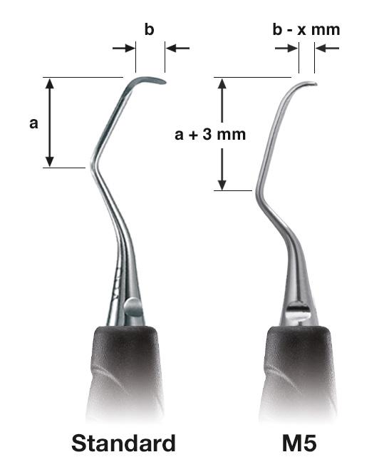 M5 Curettes have a 1st shaft which is about 3 mm longer. The sharpened instrument tip is shortened as to allow a special subgingival curettage for tight and deep pockets as well as narrow root surfaces.