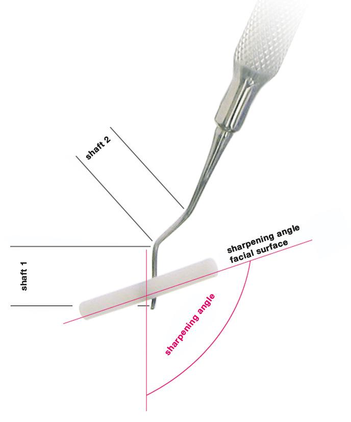 Once the first shaft is fixed in a right angle (use a vise with “Rounded Swing Head” for this purpose) the magnet stick is placed onto the facial surface. This will be carried out automatically. In so doing, you achieve the sharpening angle simply and accurately. As such you can now sharpen the curettes with precision. Best results can be obtained with Natural Stone (Original Arkansas) and wetting slightly with Sharpening Oil 24.950.00. 24.950.00