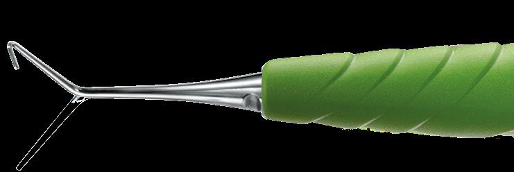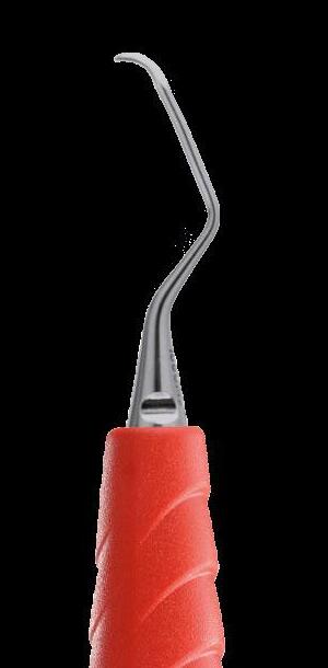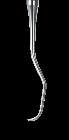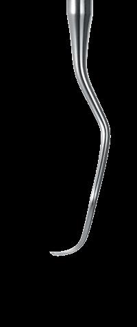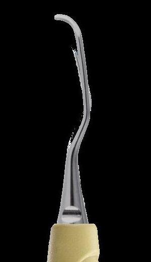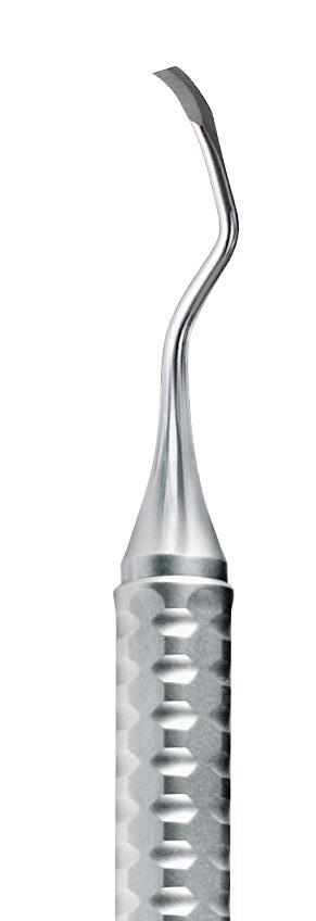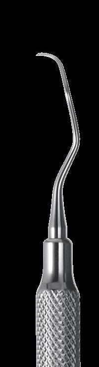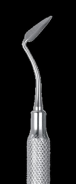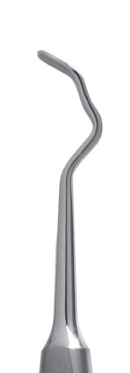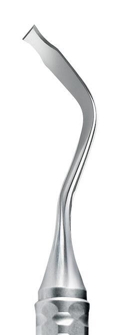 Kirkland type. The concave sections of their contoured blades are particularly ideal for use in retromolar areas, while their tips are particularly ideal for use in interdental spaces in molar areas