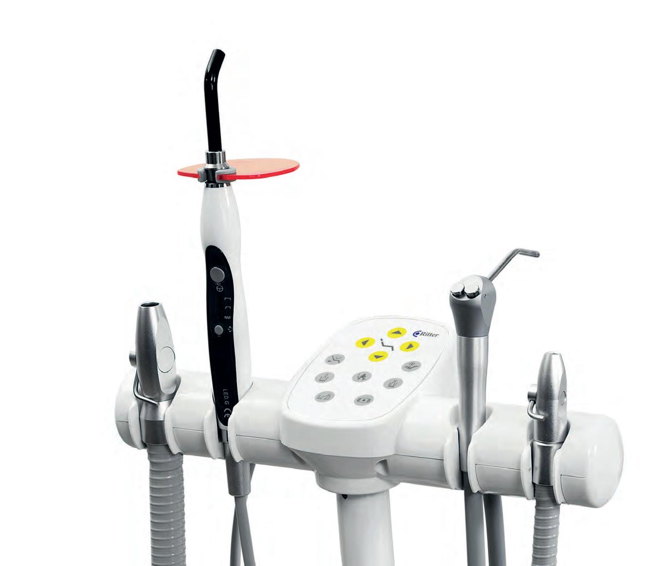 The patient chair is synchronized and is electric driven. An ergonomic chair hight guarantees easy access. The water unit has a self-contained clean water system. The multifunctional foot pedal control system is easy to use and supports an excellent workflow.