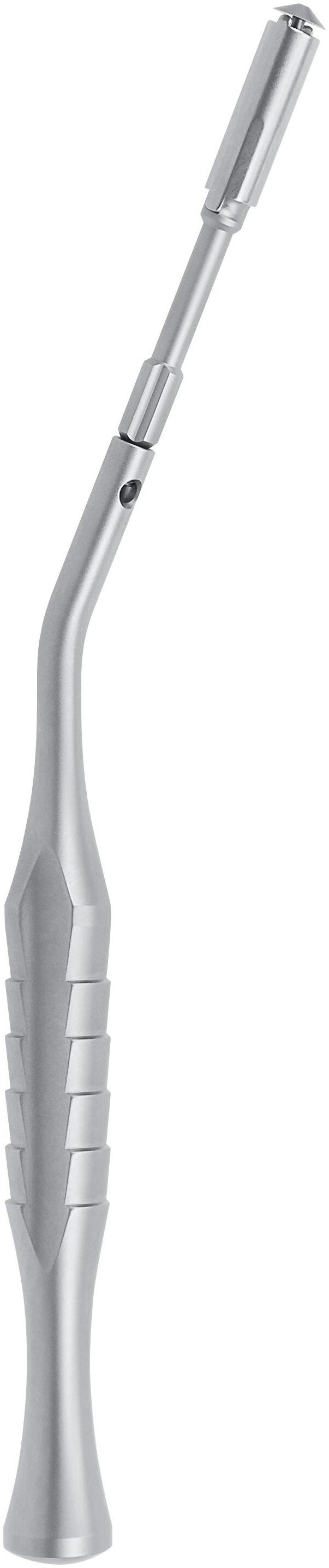 Light, manufactured from top-quality plastic with a satin surface finish, ergonomically designed, flexible, suitable for ultrasonic cleaning, sterilizable, and compatible with any standard insert with an M 2.5 metric thread.