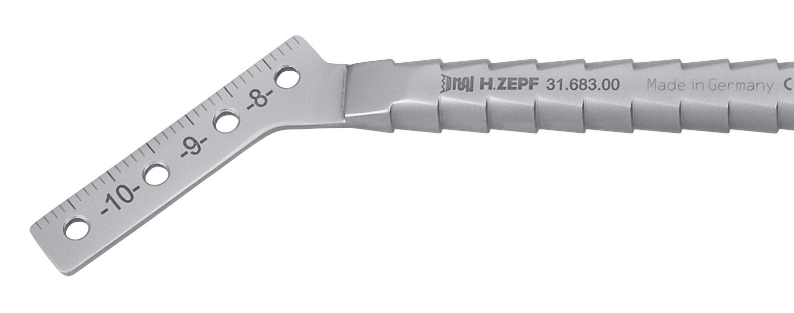 The colored pin with length marking is assigned to the respective screw diameter, thus allowing the determination of the screw length and a clear lot traceability in the box.