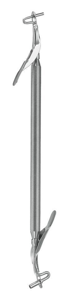 The Retractor and Mouth Mirror is available in two sizes, featuring a heart-shaped, ergonomic and highly polished design. The instrument is available in size 24 and 27 mm.