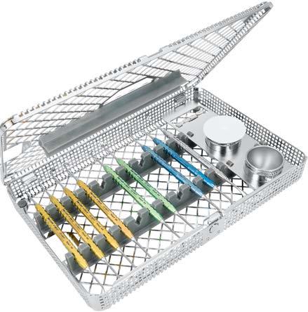 Following the Zepf-Care Series, the modularly composable components for the CMF SYSTEM were developed, offering a washbasket with appropriate combination options. The actual tools can be organized depending on the desired diameter. This guarantees an RKI compliant reprocessing of the CMF SYSTEM.