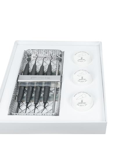 Screw and Pin Box for 2 x 5 screws Ø 1.2, 1 x 5 screws Ø 1.5, 10 membrane pins and a small storage space for instruments, membranes, bone plates etc.