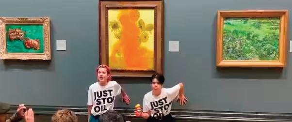 Una zuppa di pomodoro scagliata contro il quadro di Van Gogh alla National Gallery di Londra per denunciare l’inquinamento. È il gesto dimostrativo di due ambientaliste del gruppo “Just Stop Oil” per protestare contro il petrolio. I Girasoli di Van Gogh non sono stati compromessi grazie al vetro protettivo in dotazione. Le ambientaliste, dopo aver gettato la zuppa hanno gridato: “Cosa è più importante, l’arte o la vita? e poi “L’arte è più importante del cibo?”. Dopo l’azione delle giovani, gli addetti alla sicurezza del museo hanno liberato la stanza, portato le attiviste via e ripulito la tela imbrattata. Nelle ultime due settimane il gruppo di ambientalisti ha intensificato la sua azione con sit-in in piazza e blocchi stradali a Londra. In sua difesa ha dichiarato che queste azioni sono l’unico modo per sensibilizzare il pubblico. (16 ottobre)