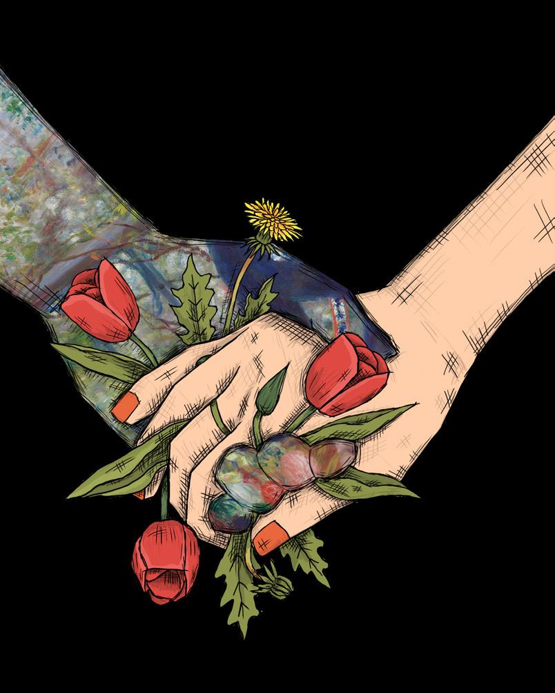 the world around us with Liz, Aidan, Jestina, and Radhia’s pieces. Liz and Jestina inspect their personal experiences and understandings of love while reflecting on the unexpected threads that keep relationships together. Radhia re-defines Octobers and all the beautiful changes she’s welcoming into her ever-evolving universe. In his analytical essay, Aidan investigates how the digital revolution challenged pop culture by promoting individualism and supporting niche interests.