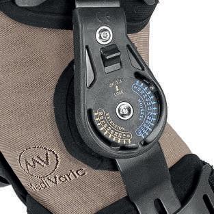 Bisagras con rotación de 0 a 90 grados para la extención y 0 a 120 grados para la flexión, cada uno en incrementos de 10 grados para ajustar