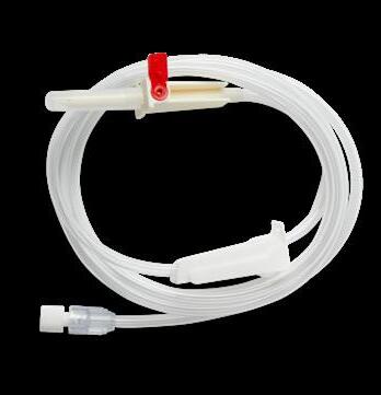 IV tubing–Drip chamber non-vented Allows for pressurization of saline
