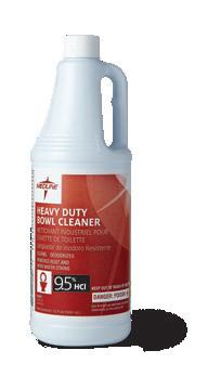 • For tougher stains, use heavy-duty products, such as a more acidic toilet bowl cleaner, foaming acid shower cleaner, or a crème cleanser for soap scum, scale and rust.