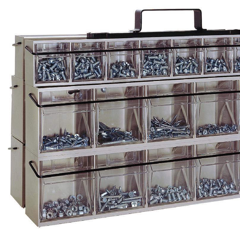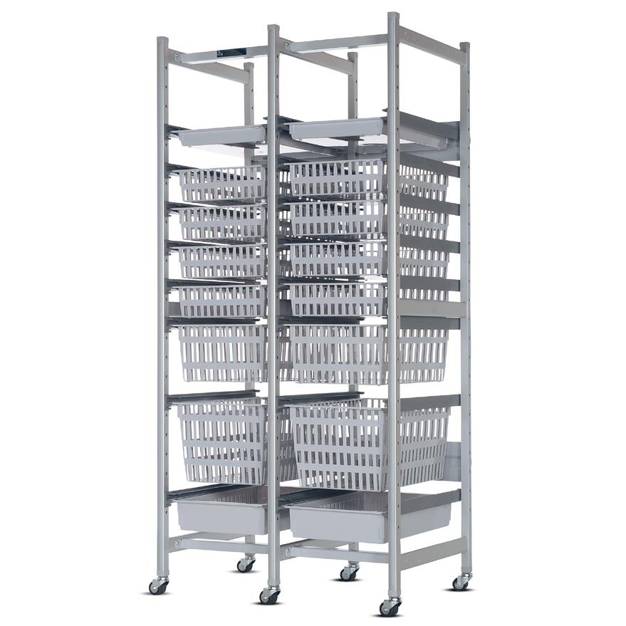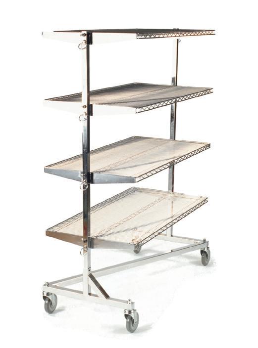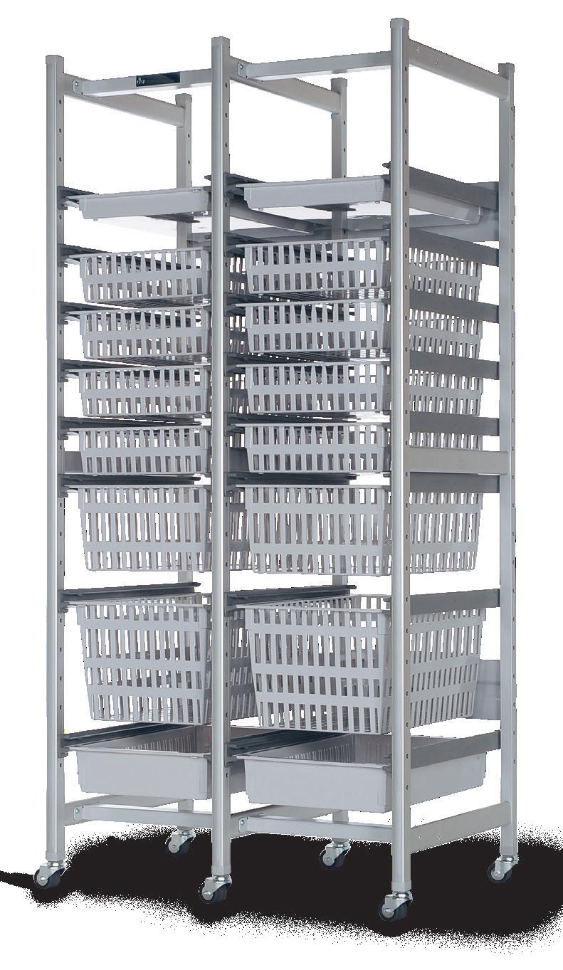 • Unique design of plastic side panels, combined with pull-out stoppers, allows trays to be viewed at an angle without falling out of the cart
