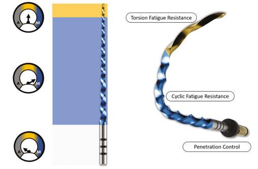 other systems, are routinely accessed with X7. While 21 mm length is readily available, I find that 25 mm length files are easily pre-bent into the most limited of openings. Both 0.04 or 0.06 straight taper files exist, and can be combined in series if desired. The files do not cut aggressively and require frequent cleaning of the flutes. When used with appropriate technique, the files will nearly always unwind in tortuous anatomy rather than separate, and so I have high confidence using them in the most calcified or curved canals. In canals where even small hand files fail to negotiate, X7 finds a way. However, given their straight taper and cutting flute design only to D12, even larger apical preparations may be difficult to facilitate traditional irrigation tips to the apical third without binding in the coronal or mid-third. Enter IrriFlex.