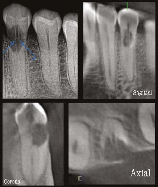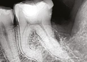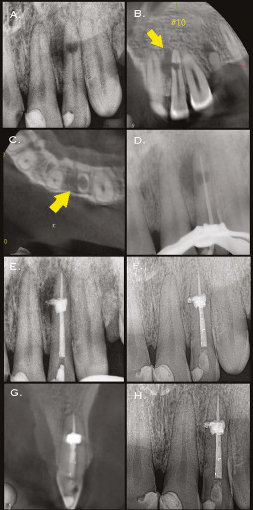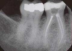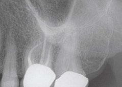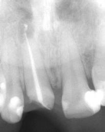 the apical. Also noted was slight external resorption at the apical related to the lesion. The patient was scheduled for placement of a fiber post with composite core and a full crown.