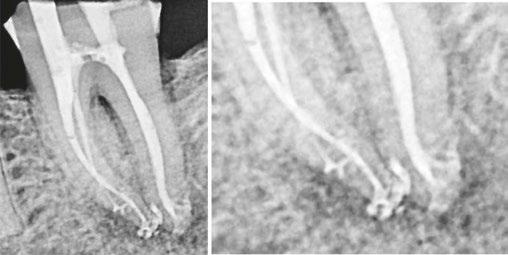 sealer into the adjacent canal anatomy (Figures 2 and 3). The gutta-percha cones and paper points have length markings on them to aid in assuring working length (WL) is achieved when drying the canals and during obturation.