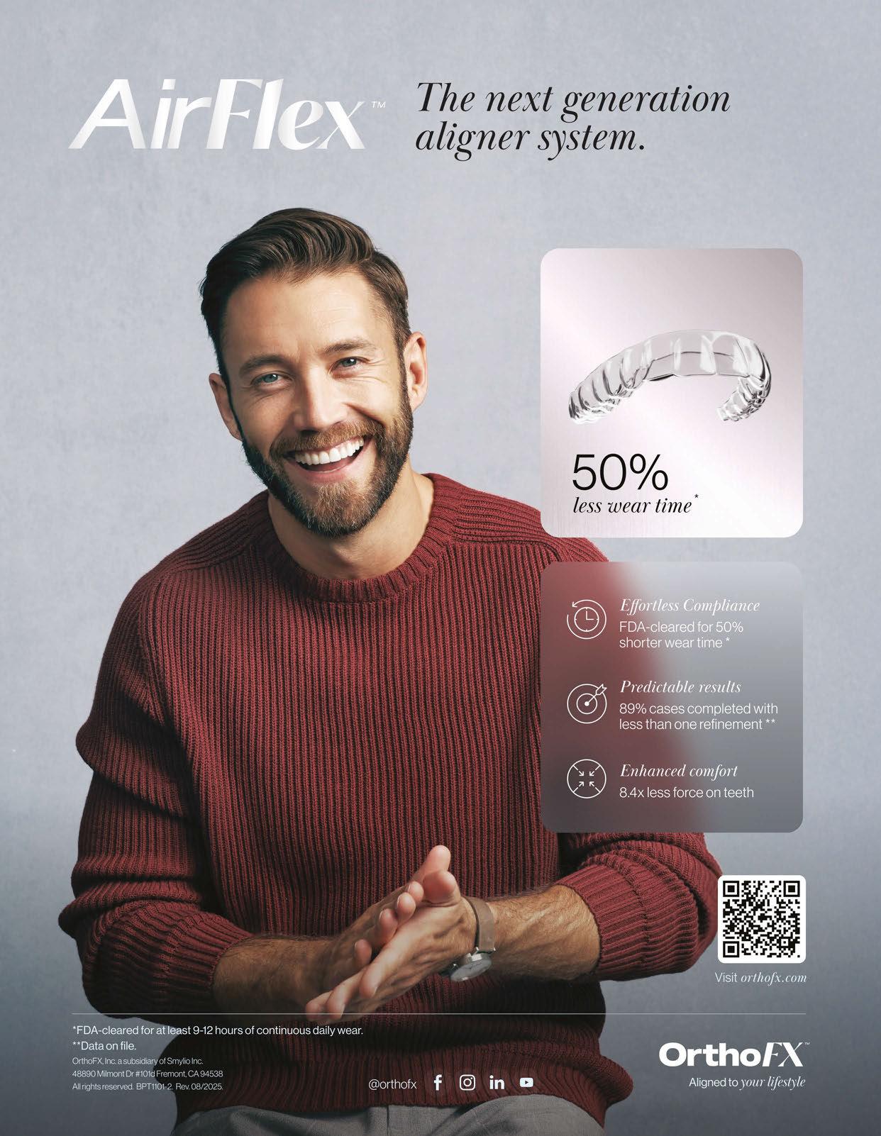 The advanced AirFlex aligner system and OrthoFX’s all-inone solution is designed to fit the modern patient’s lifestyle, with the convenience of keeping their smile journey on track with enhanced comfort, shorter wear times, and fewer office visits.