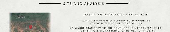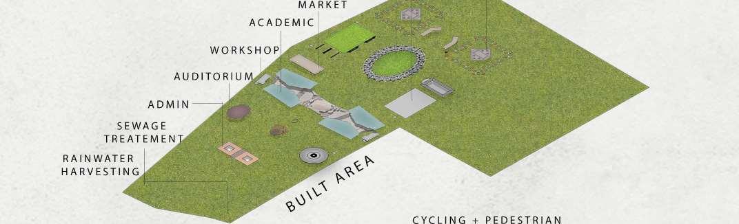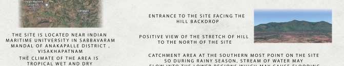 THE PROJECT WAS TO DESIGN A MULTI - DISCIPLINARY UNIVERSITY ON 150 ACRES OF LAND IN ANAKAPALLE DISTRICT OF VISAKHAPATNAM NEAR INDIAN MARITIME UNIVERSITY. THE SITE HAS TO ENTRANCES, ONE TOWARDS THE SOUTH WHICH IS OF 30 M WIDTH AND ANOTHER ONE TO THE WEST SIDE OF THE SITE . TO THE REAR OF THE SITE, THE IS A STRETCH OF HILLS THAT CREATES AN OPPORTUNITY FOR VIEW. THE MAJOT DRAWBACK OF THE SITE IS THAT THE CONTOURS DIFFERENCE FROM THE SOUTH END OF THE SITE TO THE NORTH END OF THE SITE IS NEARLY 15 M. BUT TAKING THIS TO AN OPPORTUNITY, THE ZONING WAS DONE IN SUCH A WAY THAT EACH ZONES WERE DIVIDED BASED ON THE USER GROUP AND THE ACTIVITY MAPPING WITHIN THE SITE AND SLIGHT RAMPS WER PROVIDED FROM ONE ZONE TO ANOTHER CREATING AN OPPORTUNITY FOR UNIVERSAL ACCESSIBILITY.
