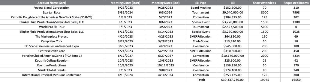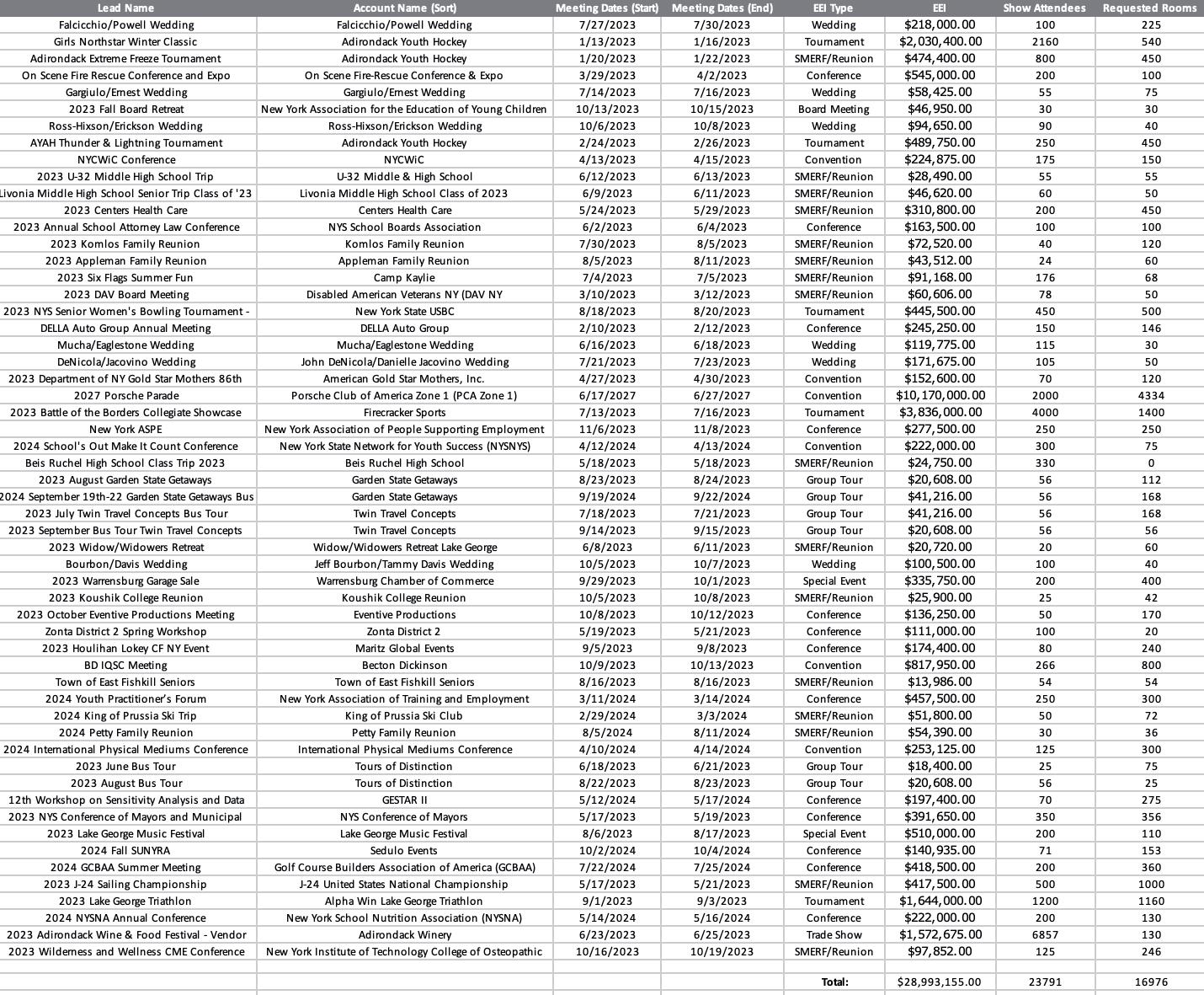The LGRCVB is pleased to present the Quarterly Report for January - March 2023. All programs and services tie back to LGRCVB’s 2023 Sales and Marketing Plan and drive toward the imperative to increase visitor-related economic impact through five core markets: Meetings, Sports, Weddings, SMERF (Social, Military, Educational, Religious and Fraternal Organizations) and Group Tour.