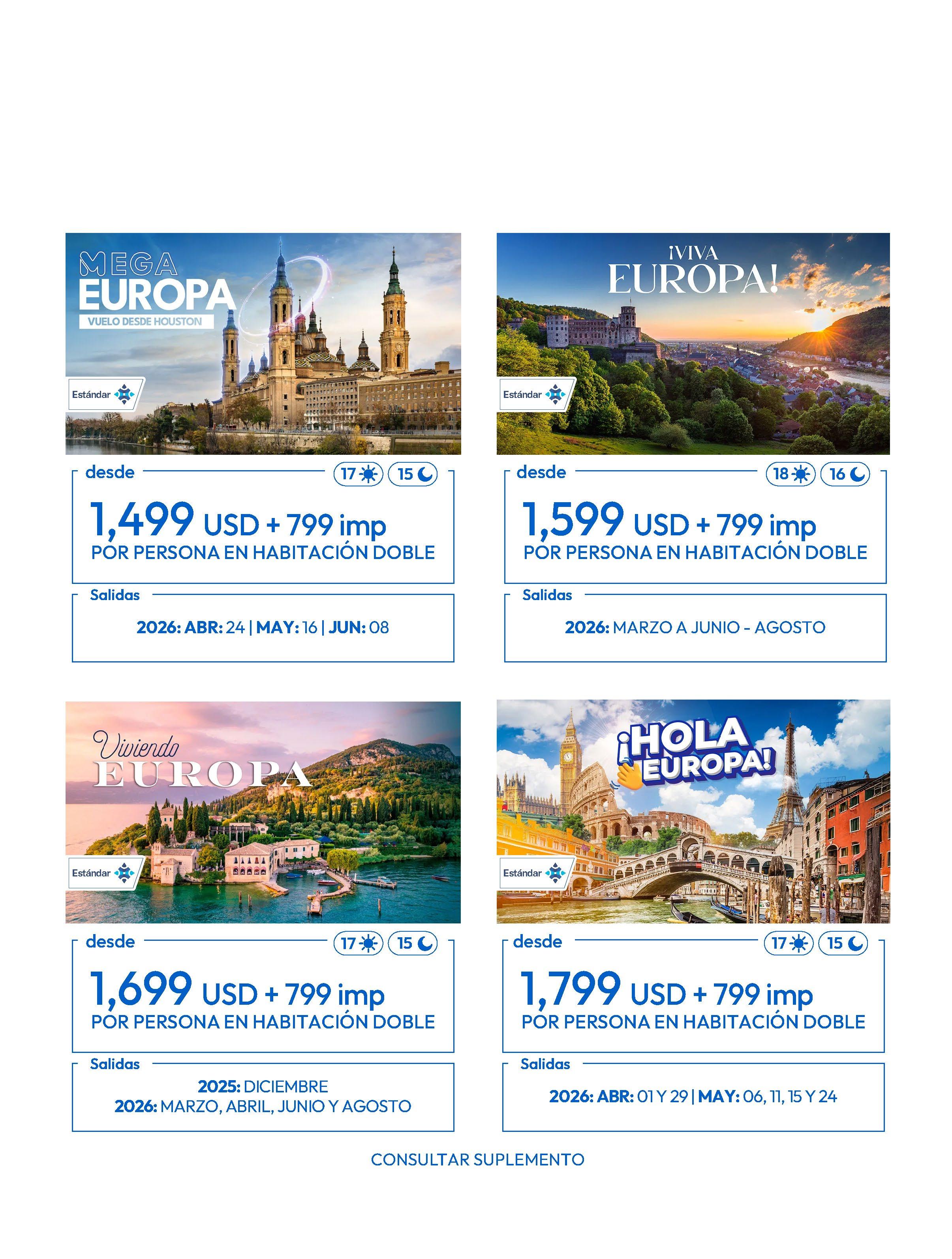 Todos los paquetes descritos en esta publicación incluyen lo siguiente (de acuerdo a itinerario)