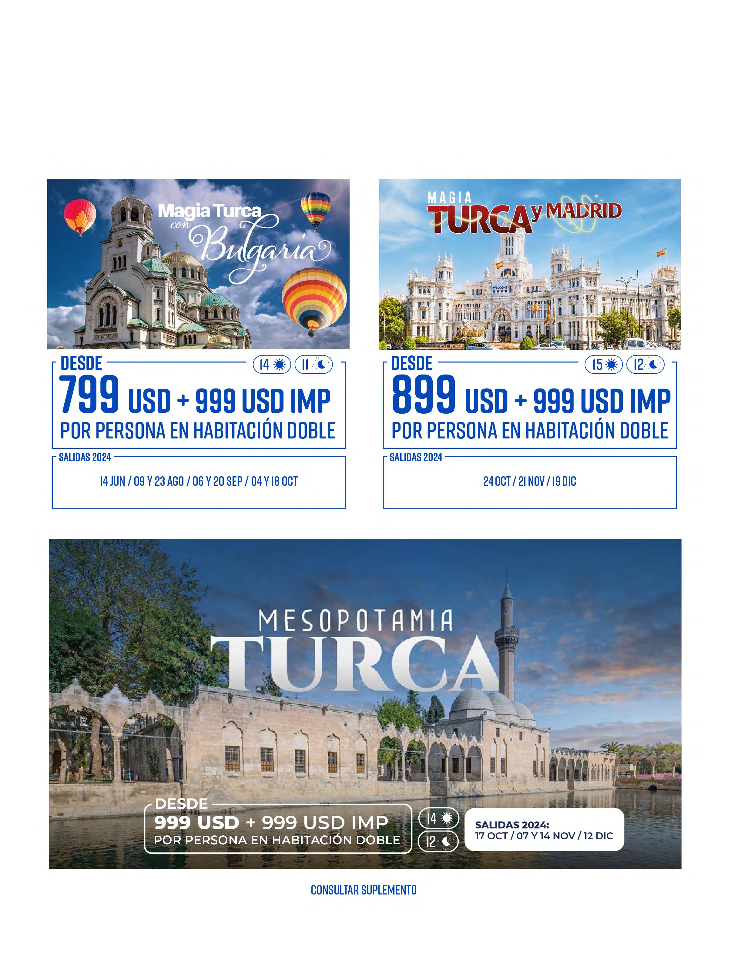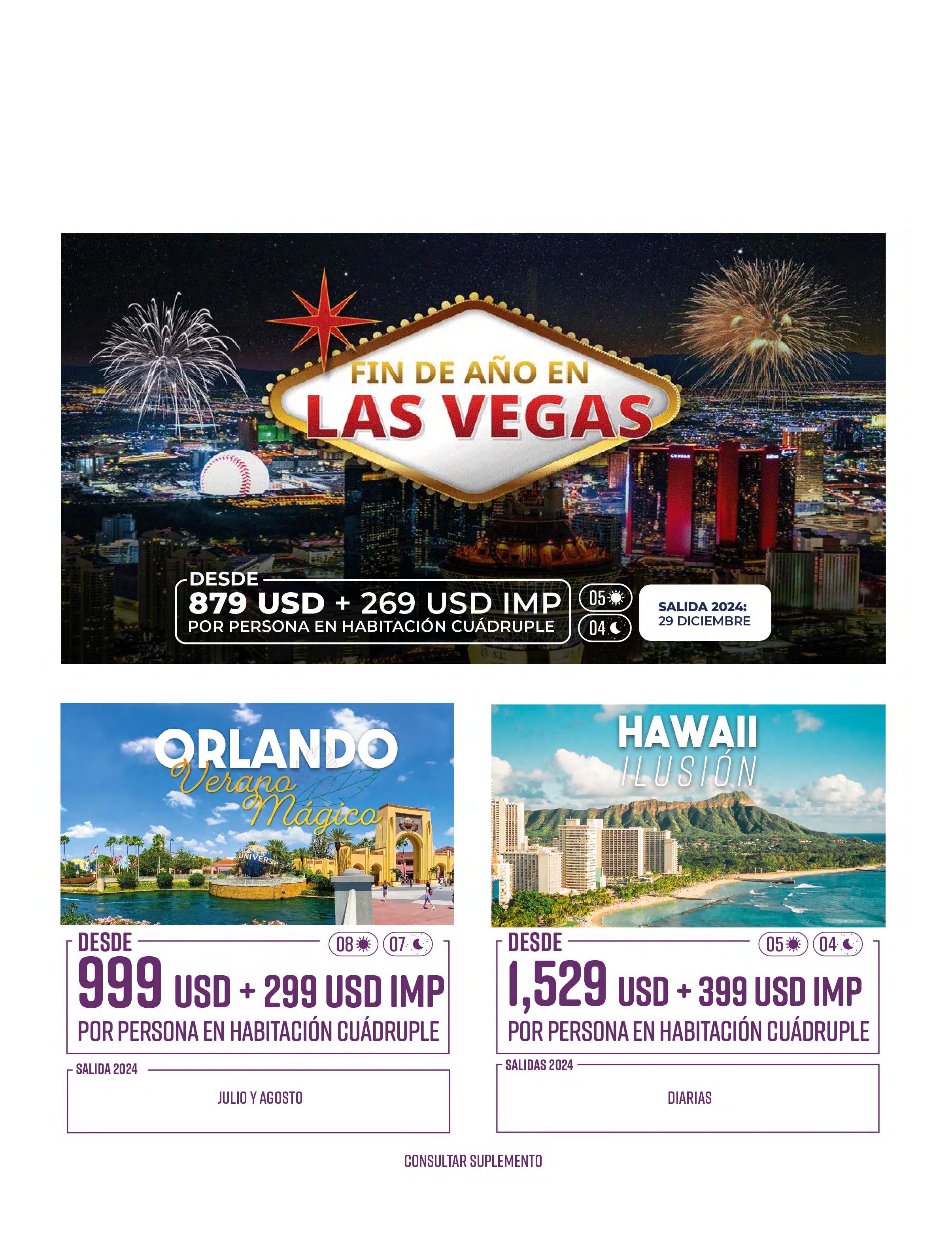 Todos los paquetes descritos en esta publicación incluyen lo siguiente (de acuerdo a itinerario)