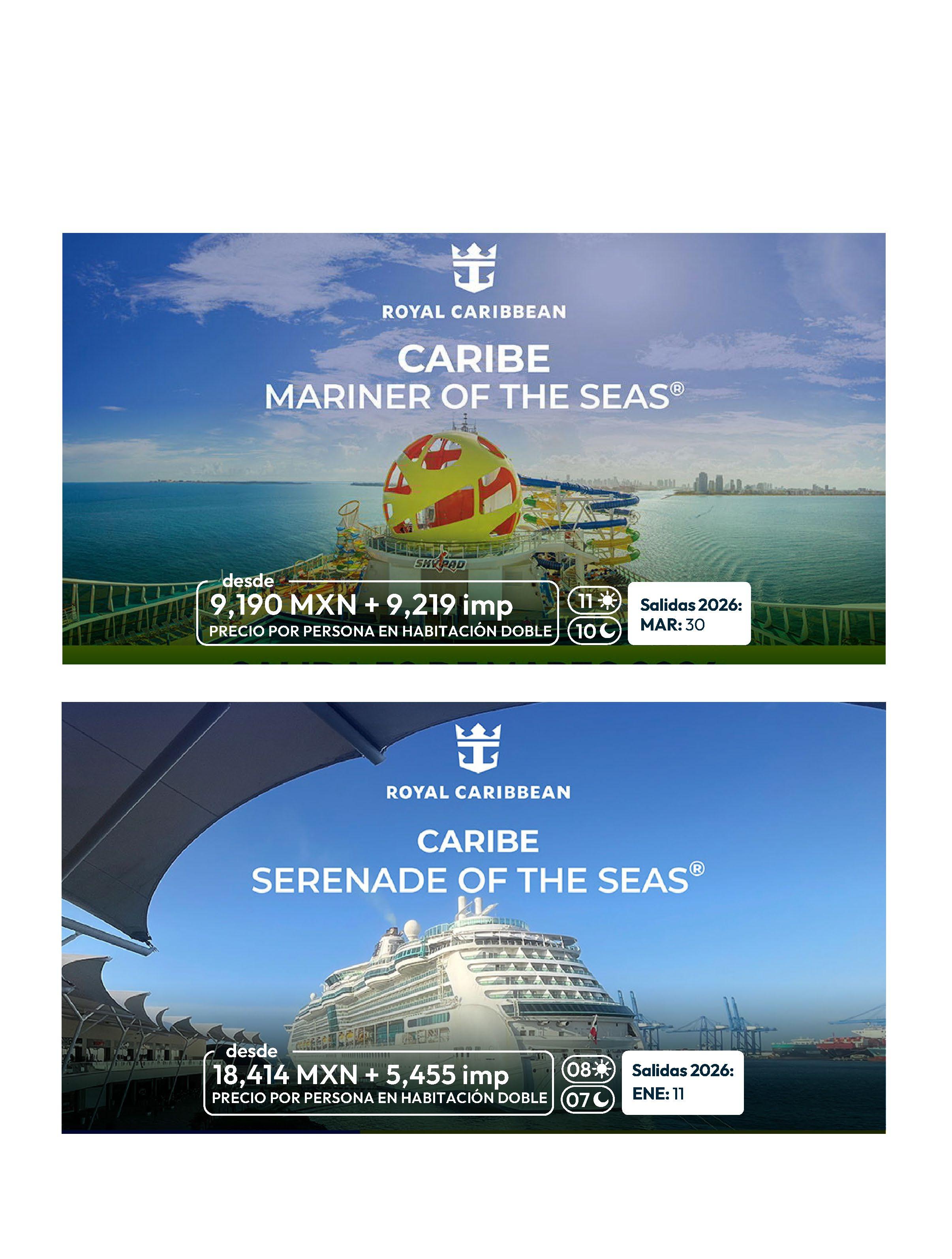 Todos los paquetes descritos en esta publicación incluyen lo siguiente (de acuerdo a itinerario)
