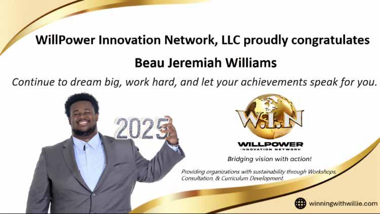 Beau Jeremiah Bruce Williams is the son of Erika Williams and has one brother. He is an active member of Abundant Living Faith Ministries, where he serves as a scripture reader during fellowship services. Currently a senior at James S. Rickards High School, Beau Jeremiah is dual-enrolled at Tallahassee State College, maintaining an unweighted high school cumu-
