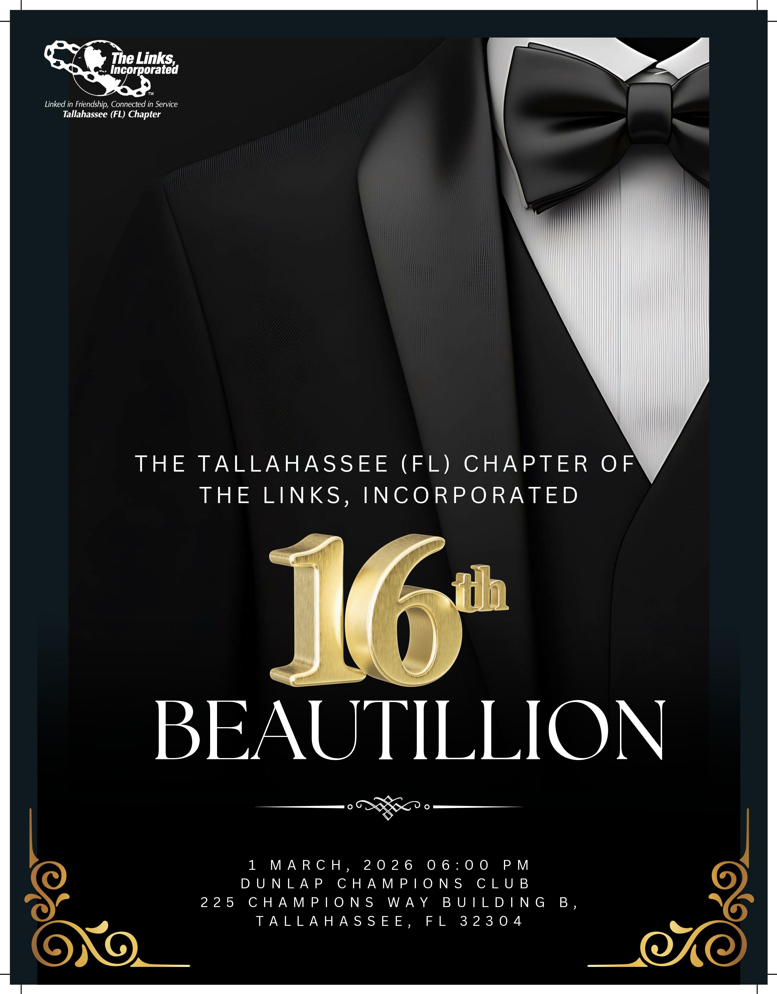 Community leaders and citizens of Tallahassee look forward to your continued preparation to accept the reigns of leadership as our future leaders. Your participation in and completion of the Links Beautillion program has introduced you to many of our natio nal, state and local decision-makers and your lofty goals, ambitions and educational pursuits are indeed lauded throughout the Tallahassee community.