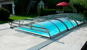 The Supreme Line combines modern design with sophisticated functionality. The flat track on one side allows easy access to the pool. In three different colors, the roofs harmoniously fit in every garden.