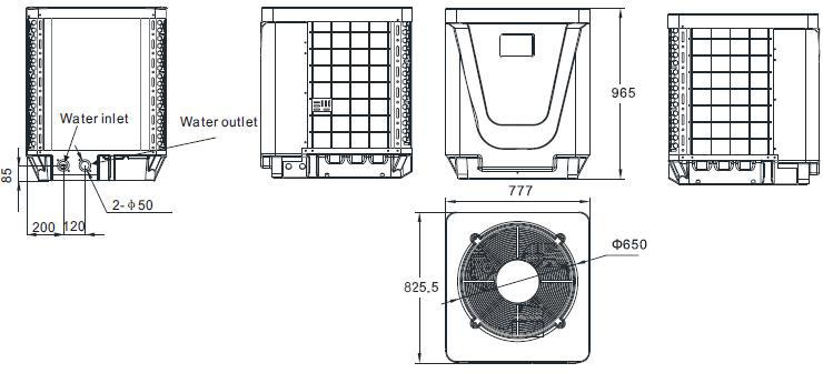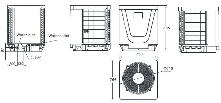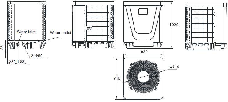 2.2 THE DIMENSIONS FOR SWIMMING POOL HEAT PUMP UNIT