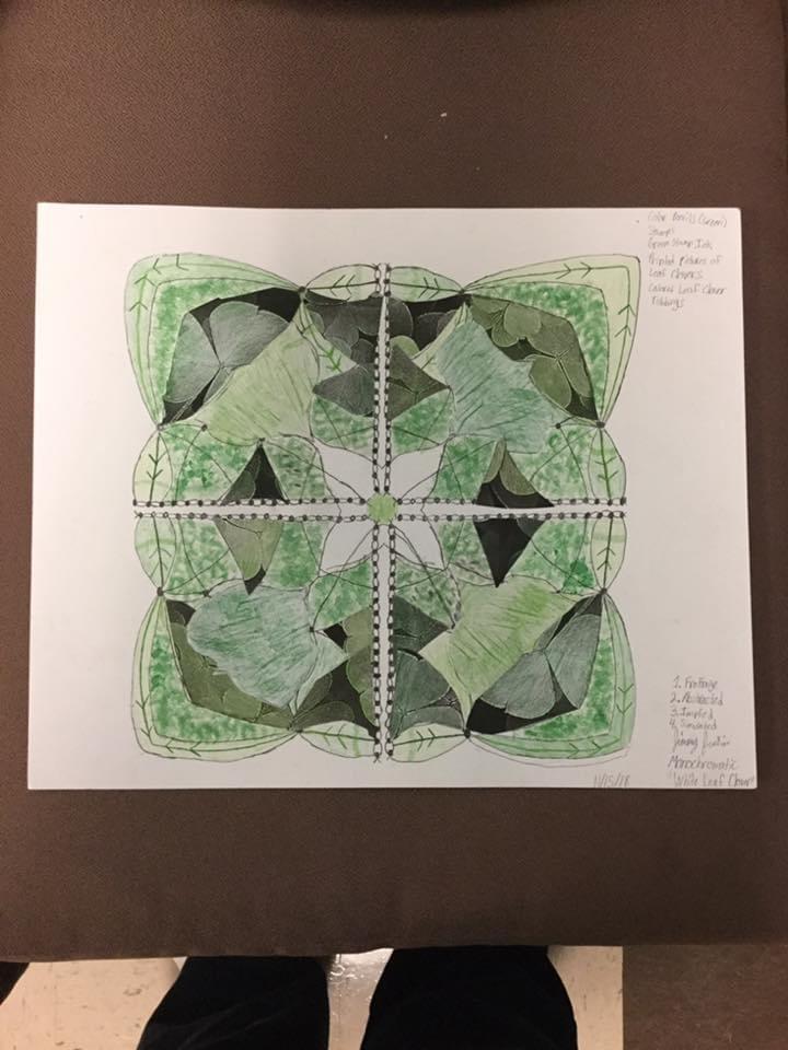 Mandala: White Leaf Clover, Traditional, Monochromatic, 2018