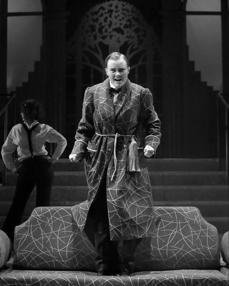 The Sofa, set in Paris during the nineteenth century, is - in the composer’s own words – ‘light-hearted, light-headed and entirely improbable’. Our hero Dominic is turned into a sofa by his grandmother for his immoral behaviour with Monique; her curse will only be lifted when a couple make love on him! His various attempts to egg on his fellow partygoers into amorous encounters are continually thwarted until the fickle Monique returns with a handsome Englishman and unknowingly releases Dominic from his textile imprisonment. After an ensemble, expressing simultaneously incredulity, indignation, and unashamed enjoyment, the opera ends as it began with Dominic and Monique ensconced again on the Sofa.