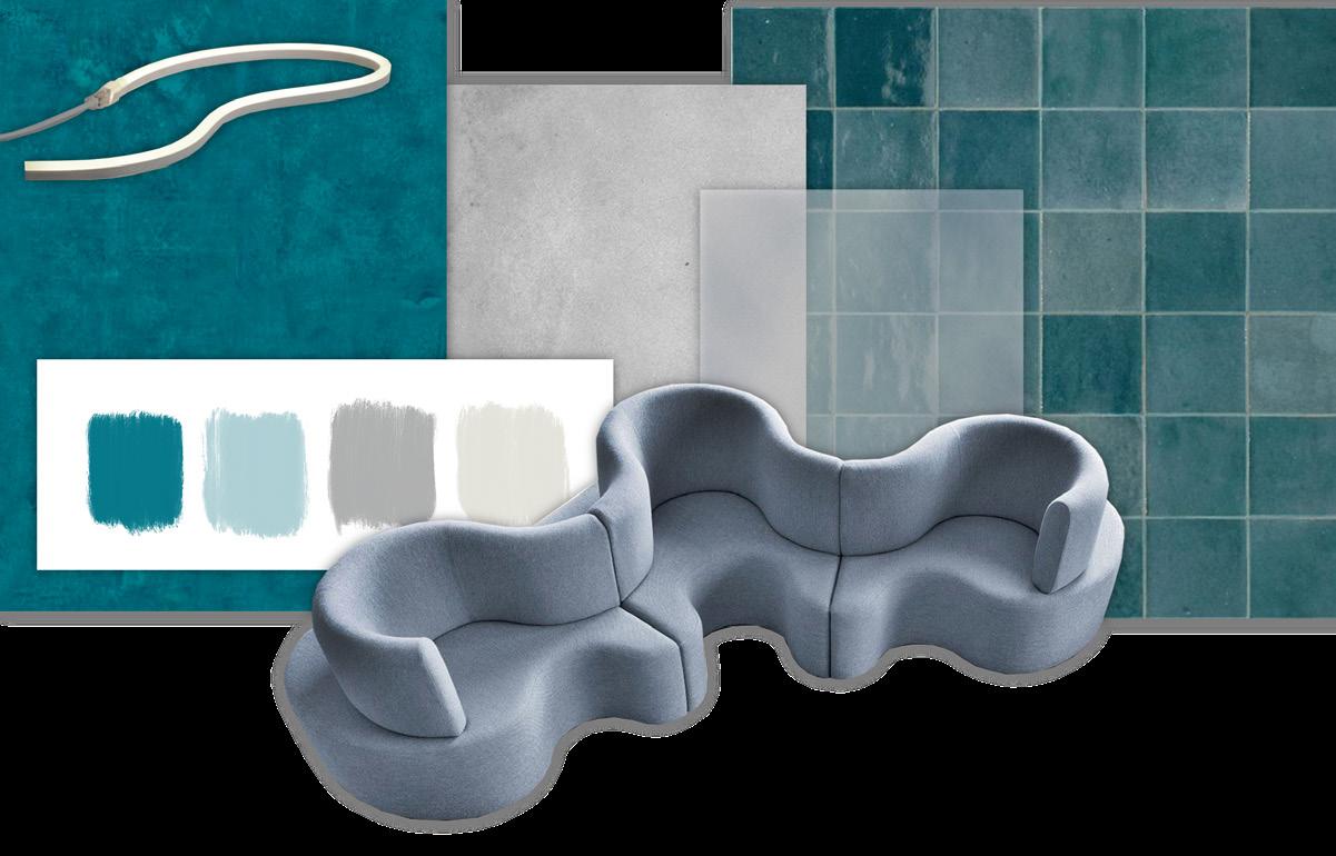 Merchandise is zoned by product to continue the concept of strict organization within the space. Organic curvilinear tables and light fixtures proved contrast to the strict organization of the shell of the space. These shapes are inspired by reflections on the water’s surface and the shadows they create on the bottom of a