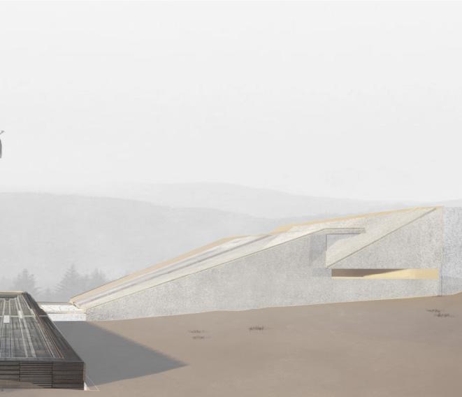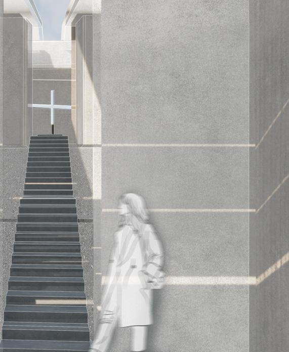 Carved into the soil, this spiritual retreat creates a relationship between light and internal forms that communicate a tactile celestial experience of spiritual renewal and connection through sanctification. The design blends into the landscape as the form suggests 3 distinct expressions of faith: Falll of Creation, True Repentence, and Sanctification. Symbolic to purity and baptism, water and its reflections become a physical transition into new life, the final sanctuary.
